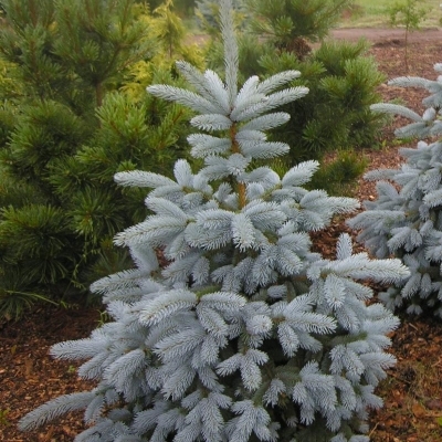 Высота саженца 30 см. Ель отличается приятной бирюзовой хвоей. Иглы длинные и колючие, расположены густо, поэтому подойти к стволу взрослого экземпляра затруднительно. На хвое едва заметен восковой налет, который выполняет защитную функцию. Он препятствует разрушению игл во время сильных ветров и осадков.Ель хорошо приживается на открытых, доступных солнечному свету участках. Возможно размещение в полутени. Если исключить контакт с солнцем, Блю Маунтин потеряет цвет, а хвоя станет более редкой. Оптимальные условия для почвы – сухой или немного увлажненный грунт. Желательно сажать ель в кислую или среднекислую землю.Высотой около 10-15м в высоту и 5 м в ширину. Характеризуется быстрым темпом роста, ежегодный прирост – до 30-35 см. Оно обладает симметричной ширококонусовидной кроной диаметром 4 м. Ствол прямой, ветви прочные, растут горизонтально.