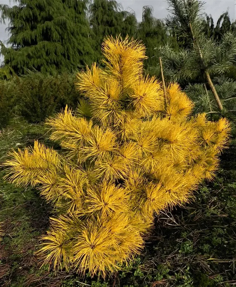 Высота саженца 30 см. Самый яркий представитель зимне-желтых сортов сосны обыкновенной. Карлик, до 2,5-3м. Можно считать аналогом сосны скрученной Шеф Джозеф.Овальная, с возрастом коническая. Высота в 10 лет примерно 100 см. и диаметр 60 см. Конечная высота может достигать 2-3 м. и в диаметр 1,5 м. Светолюбива.Морозостойка и ветроустойчивая. Деревья без проблем переживают заморозки вплоть до -40 °C. Зона 3 — до −40 °C.