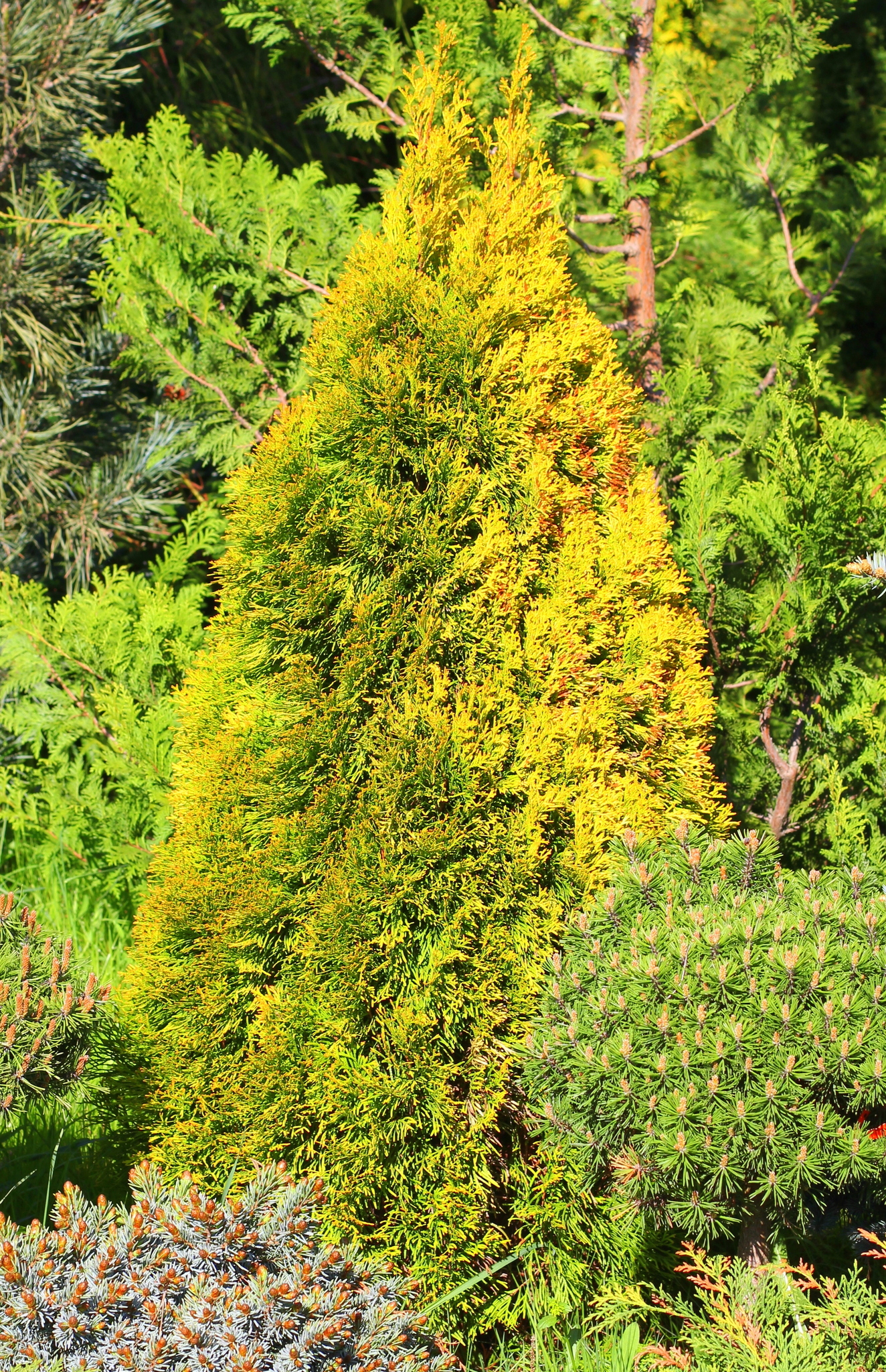 Высота саженца 25 см. Самая яркая из всех известных желтохвойных «Смарагдов».Размер взрослого растения (в 25-30 лет): высота 3 метра, ширина 1,2 метра. Размер в 10 лет: 1,2 метра. Годовой прирост: 10- 15 сантиметров. Форма кроны: узкая, вертикальная, среднерослая.