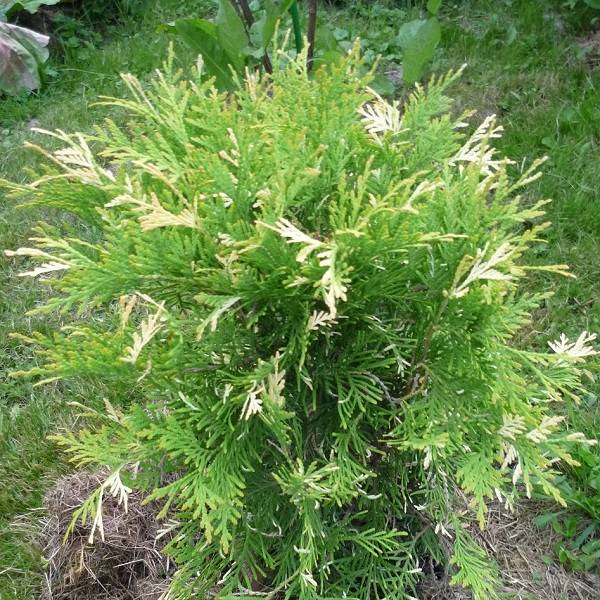Этот низкорослый кустарник, относящийся к западному виду туи. Хвоя туи имеет зелёно-жёлтую окраску с крупными кремовыми вкраплениями. В холодное время года она приобретает более яркий жёлто-бронзовый цвет.Среди преимуществ этой туи можно отметить её компактный размер и шаровидную форму кроны, которая делает её идеальной для малых приусадебных участков. К тому же она хорошо переносит стрижку, что позволяет создавать из неё различные фигурные формы.